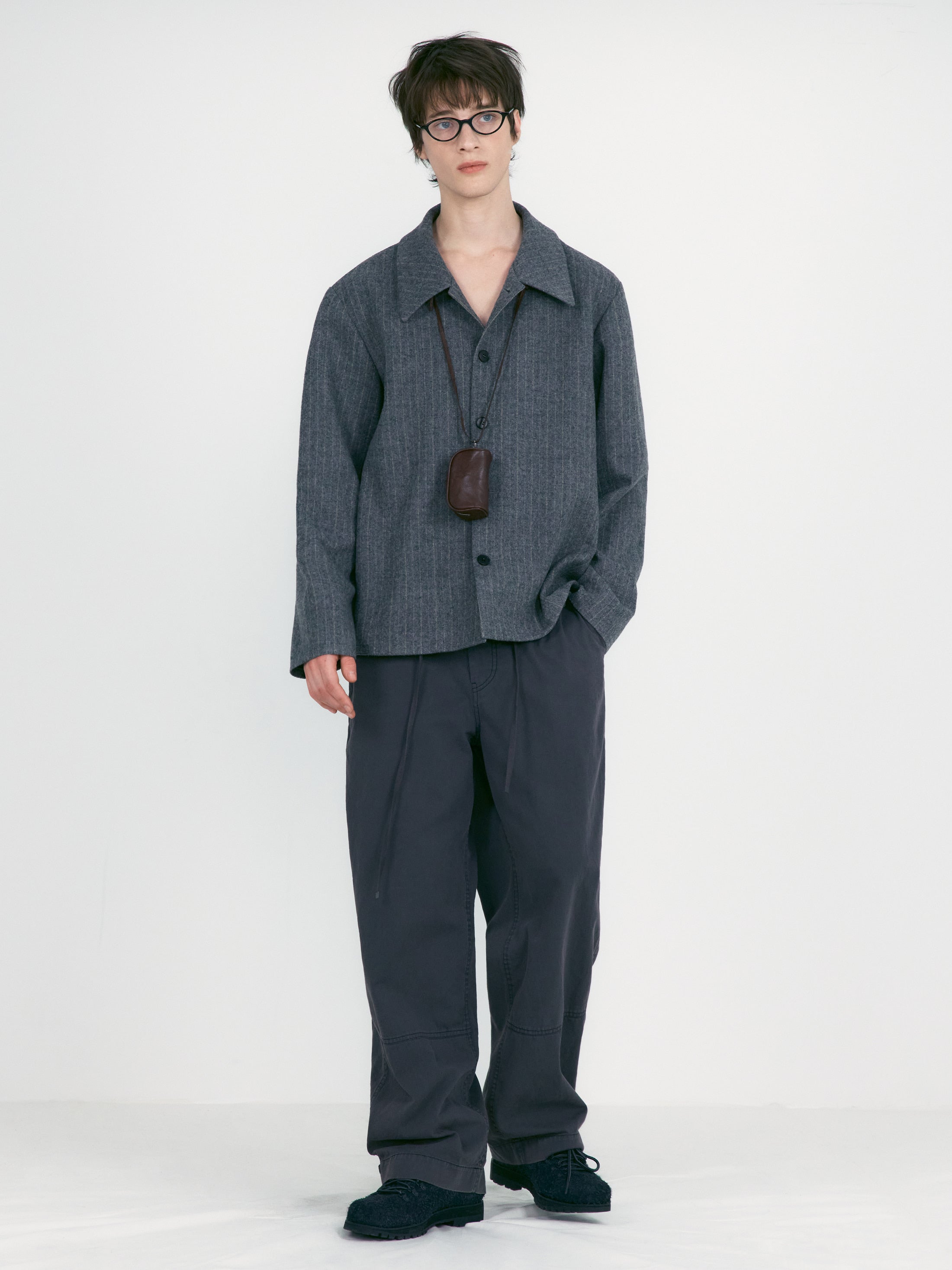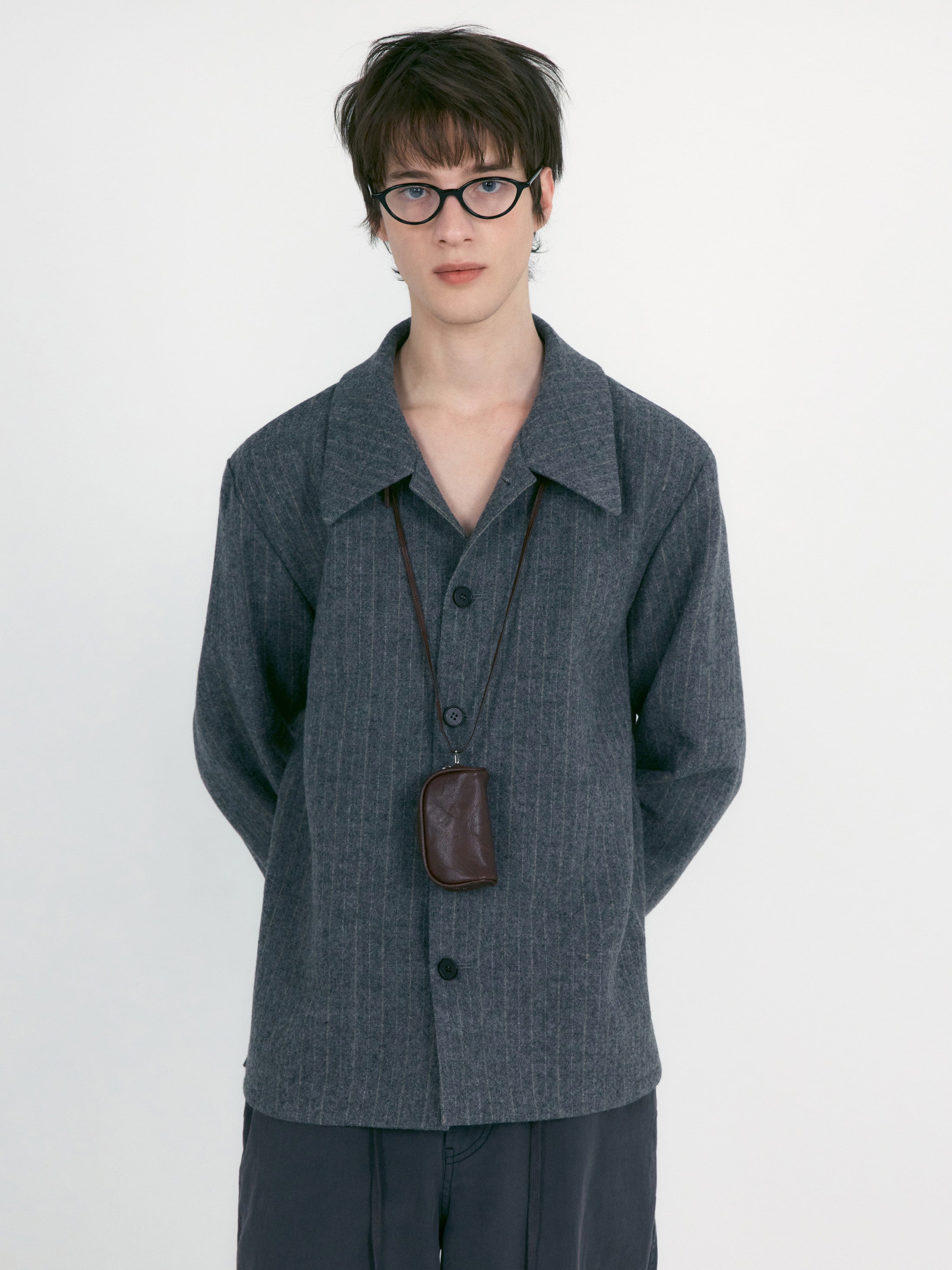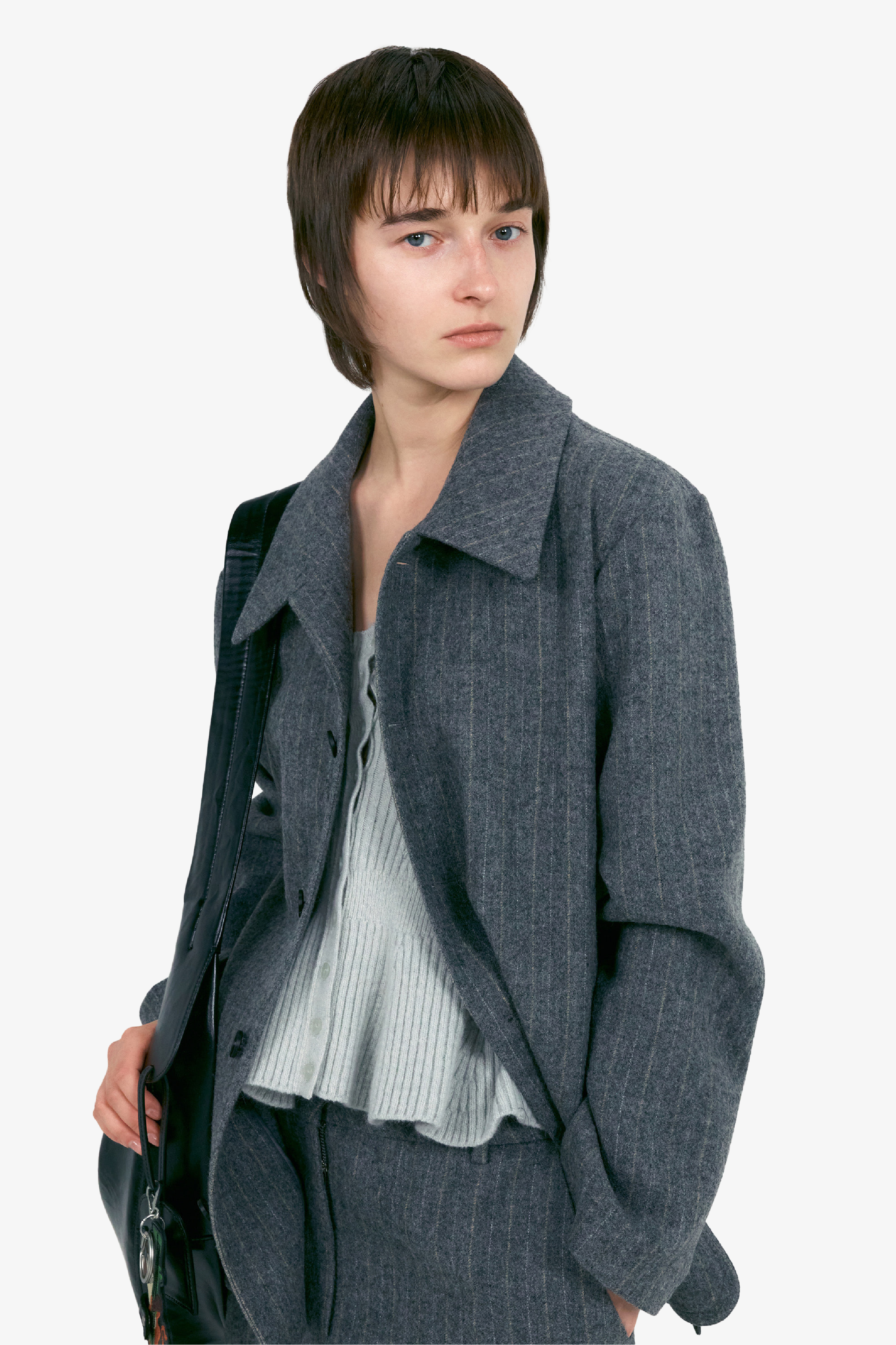 這款外套採用帶有自然條紋的羊毛材質,散發低調質感;挺拔俐落的輪廓勾勒出優雅線條。