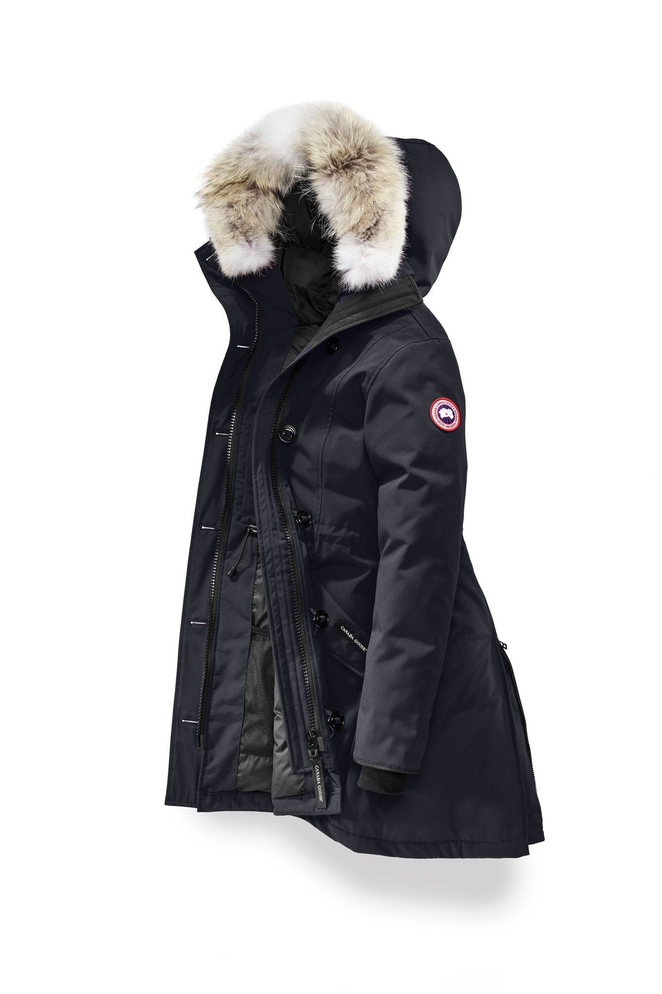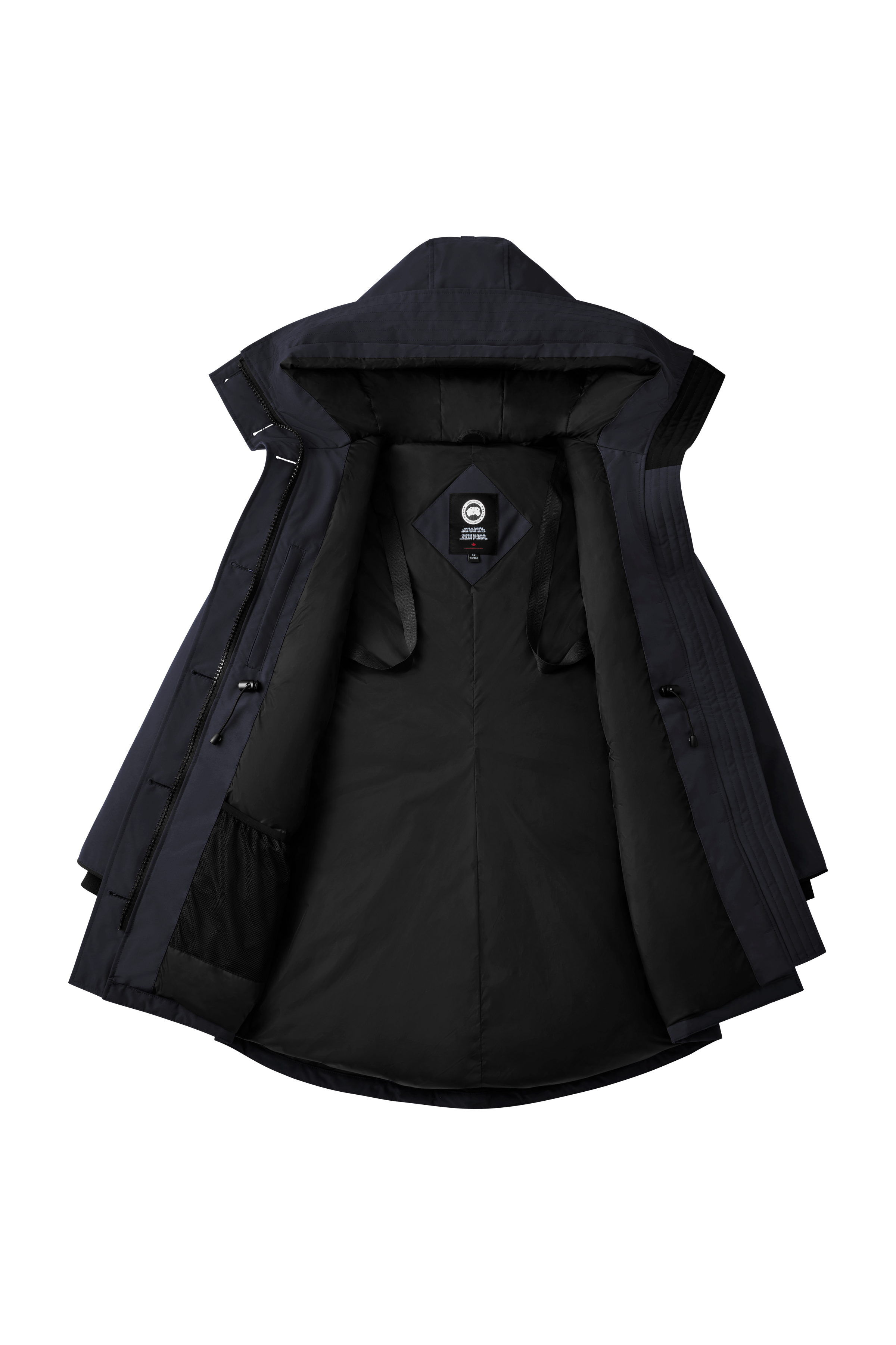 Rossclair 羽絨大衣為 Canada Goose 經典原創設計款之一,俐落剪裁呈現簡約線條,腰身為可調式設計,依照造型塑造優雅的 A 字輪廓,同時有效阻擋冷風侵入。背部設有拉鍊,可調整開衩,提升活動度,搭配加長下擺進一步提升對寒風與低溫的防護效果。